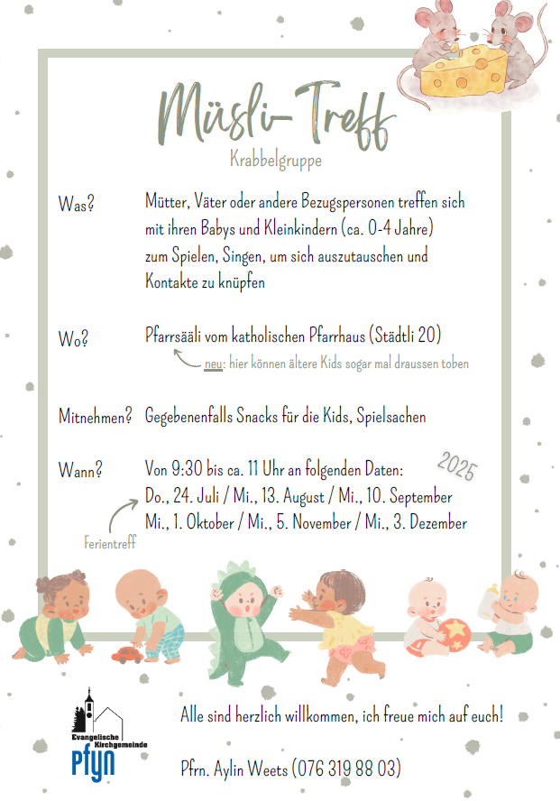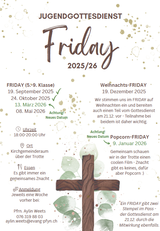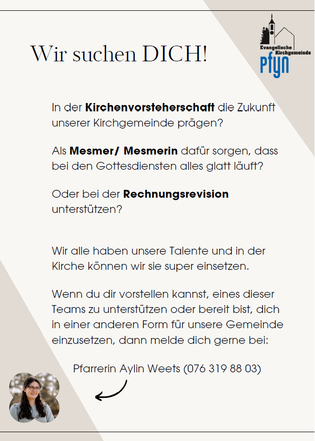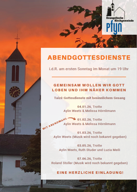 Weitere Auskünfte erteilt: Hans-Jürgen Rechsteiner, hans-jürgen.rechsteiner@evang-pfyn.ch