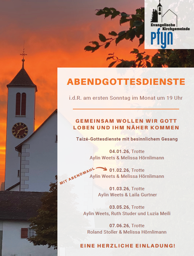 Wir begrüssen Sie herzlich in der Kirchgemeinde Pfyn und laden Sie ein, am Gemeindeleben teilzunehmen.